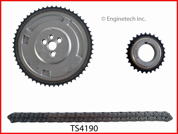 Engine VIN code X. 3pc. Set. Sierra & Silverado. Single roller chain. Cam sprocket has (3) bolt holes and (4) humps on sprocket face.