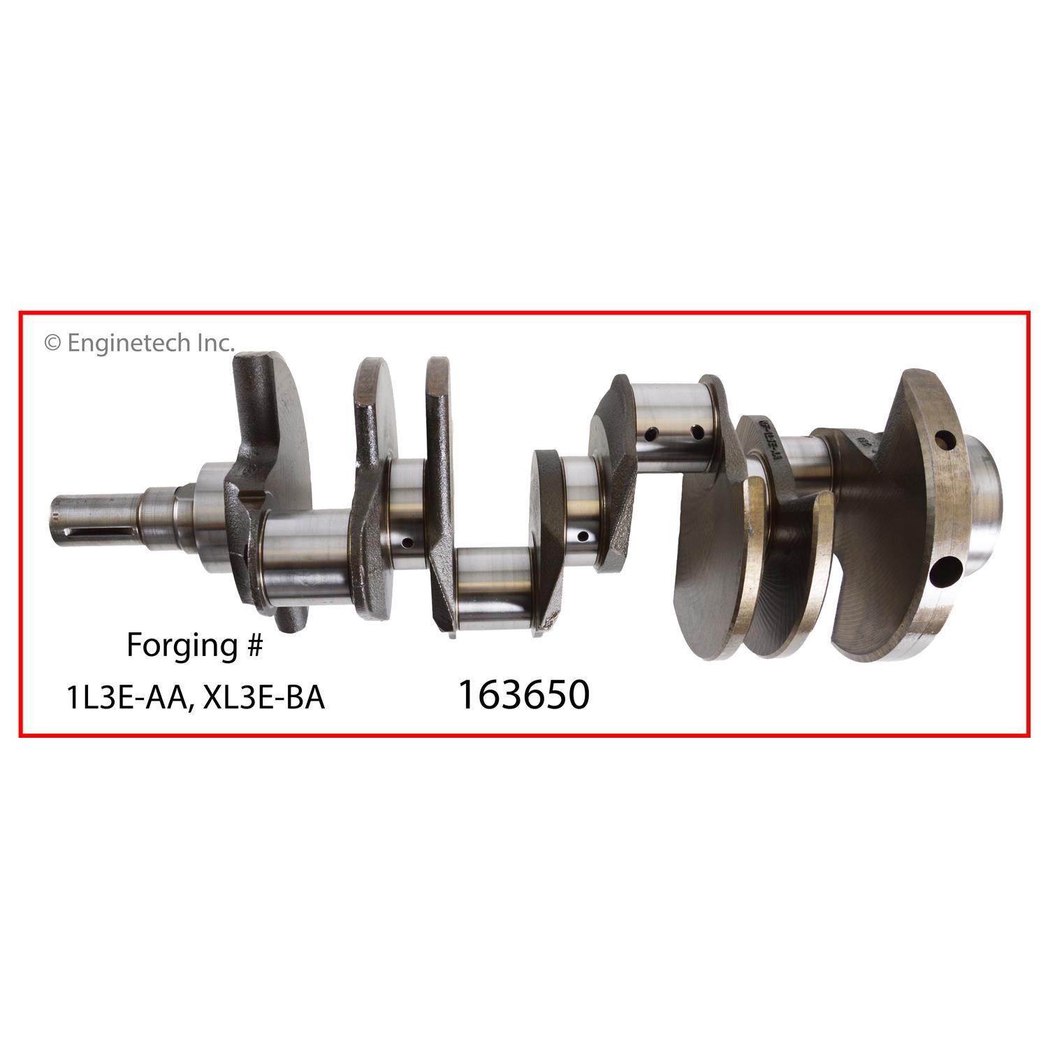 Cast crankshaft. Includes bearings. Forging # 1L3E-AA, XL3E-BA. Check for proper physical match before installation.