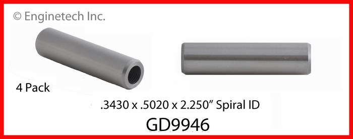 Int. & Exh. .3430 x .5020 x 2.250". Spiral ID. Iron. (4 pack).