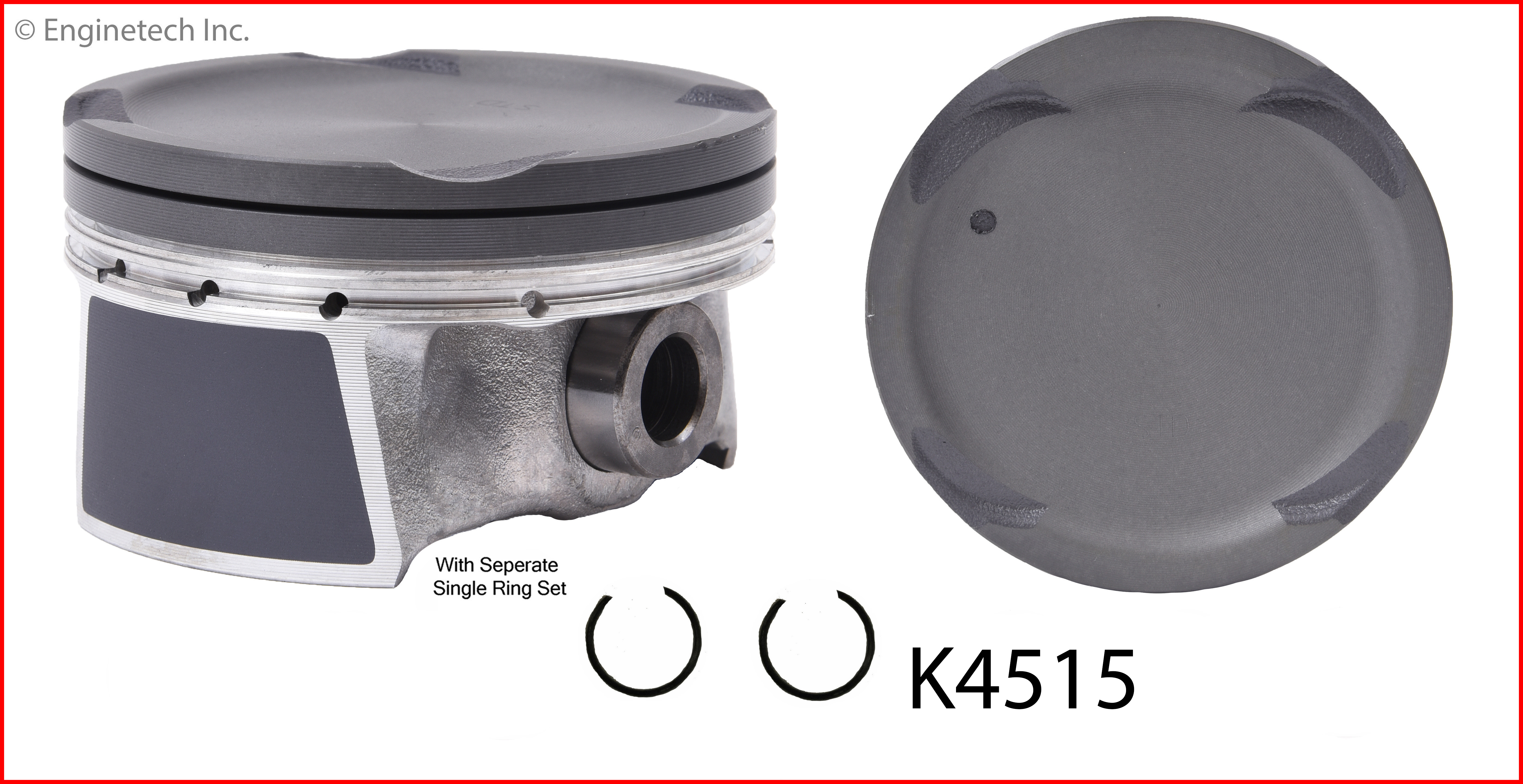 Dish top. 0.102" deep. 1.110" compression height. Kit contains (4) pistons with premium C31894 rings not loaded on piston.