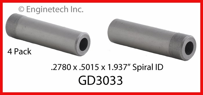 Intake. .2780 x .5015 x 1.937". Spiral ID. Iron. (4 pack). For heads with two flanges on guide.