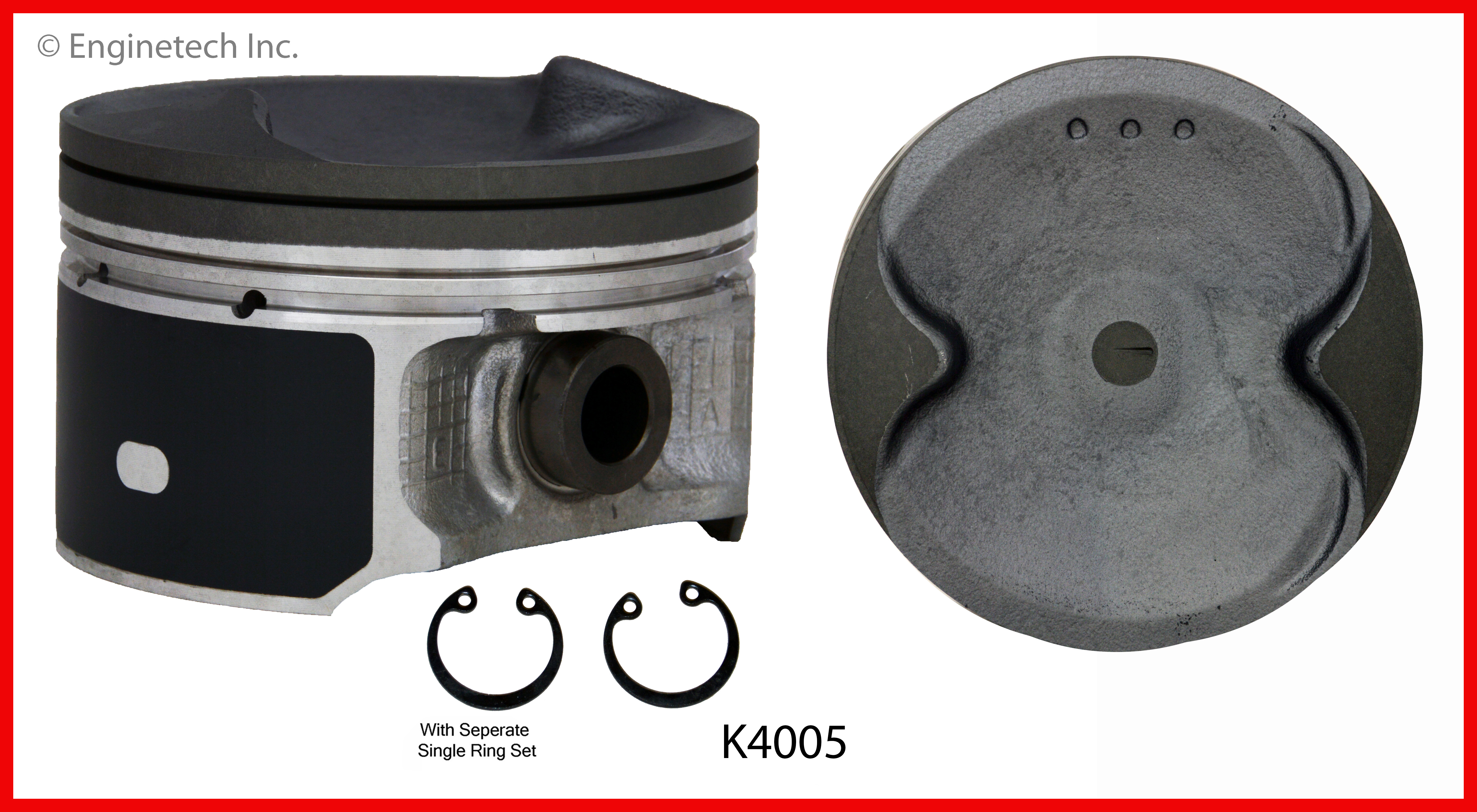 Frontier. Dish top. 1.295" compression height. Coated skirt. Anodized head. Kit contains (4) pistons with premium S89284 rings not loaded on piston.