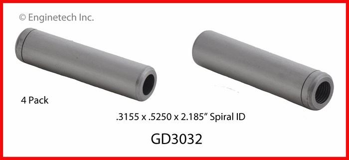 Exhaust. Std. OD. .3155 x .5250 x 2.185". Spiral ID. Iron. (4 pack).