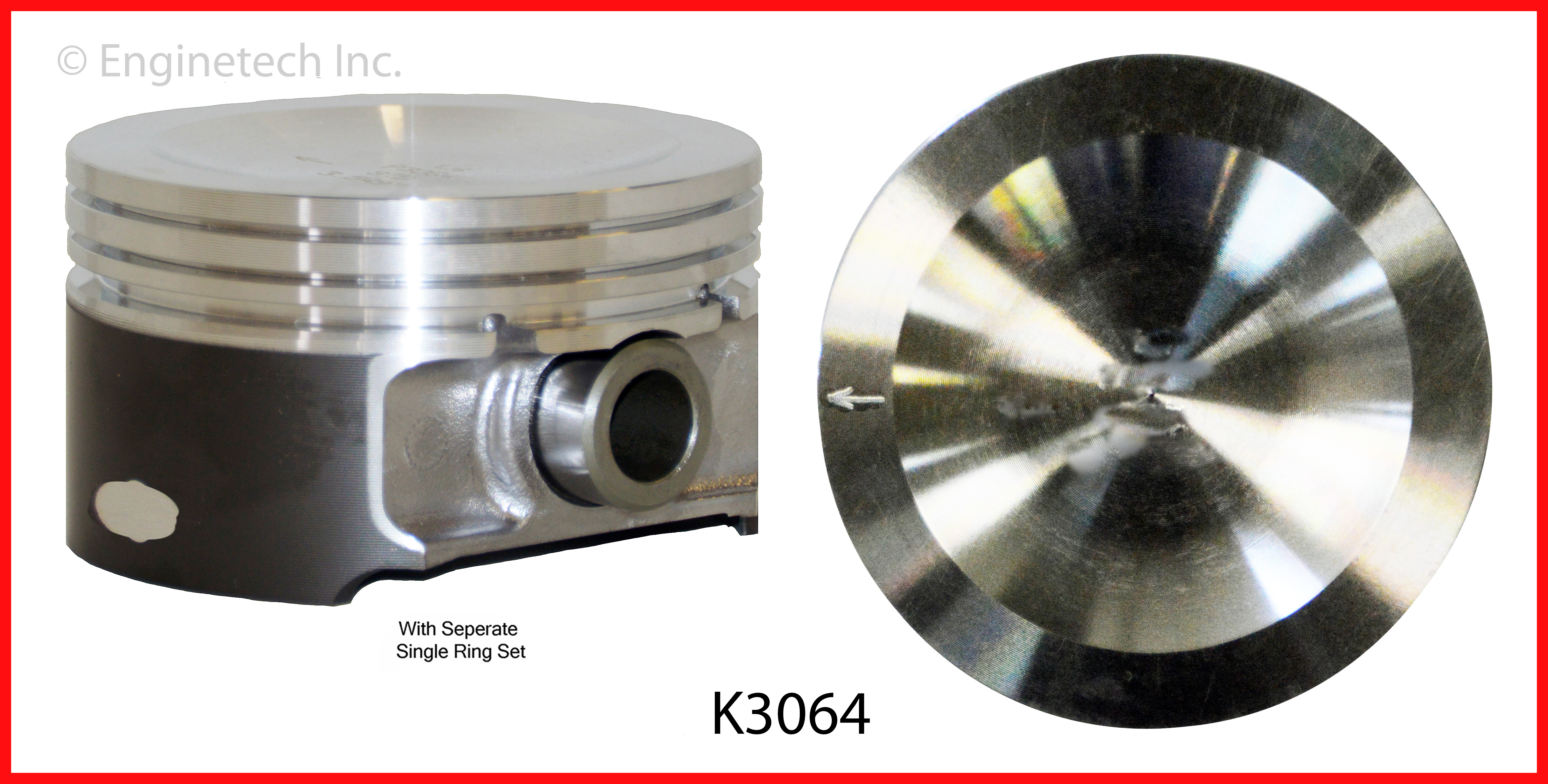Engine VIN code 6. Floating pin. Dish top .118" deep. 1.211" compression height. Hypereutectic. Coated skirt. Kit contains (8) pistons with premium S90228 rings not loaded on piston.