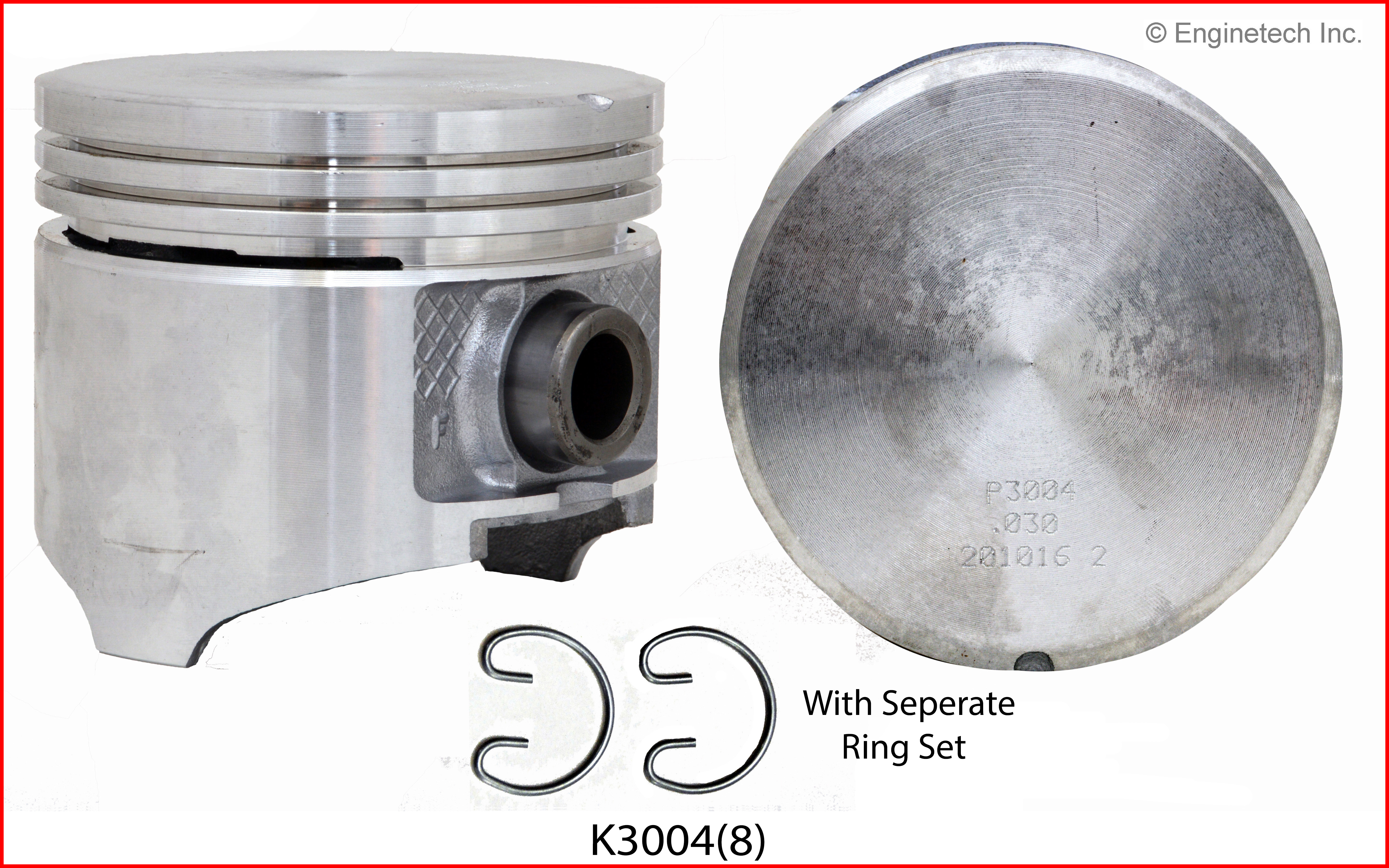 Flat top. 1.741" CH. Kit contains (8) pistons with cast rings not loaded on pistons.