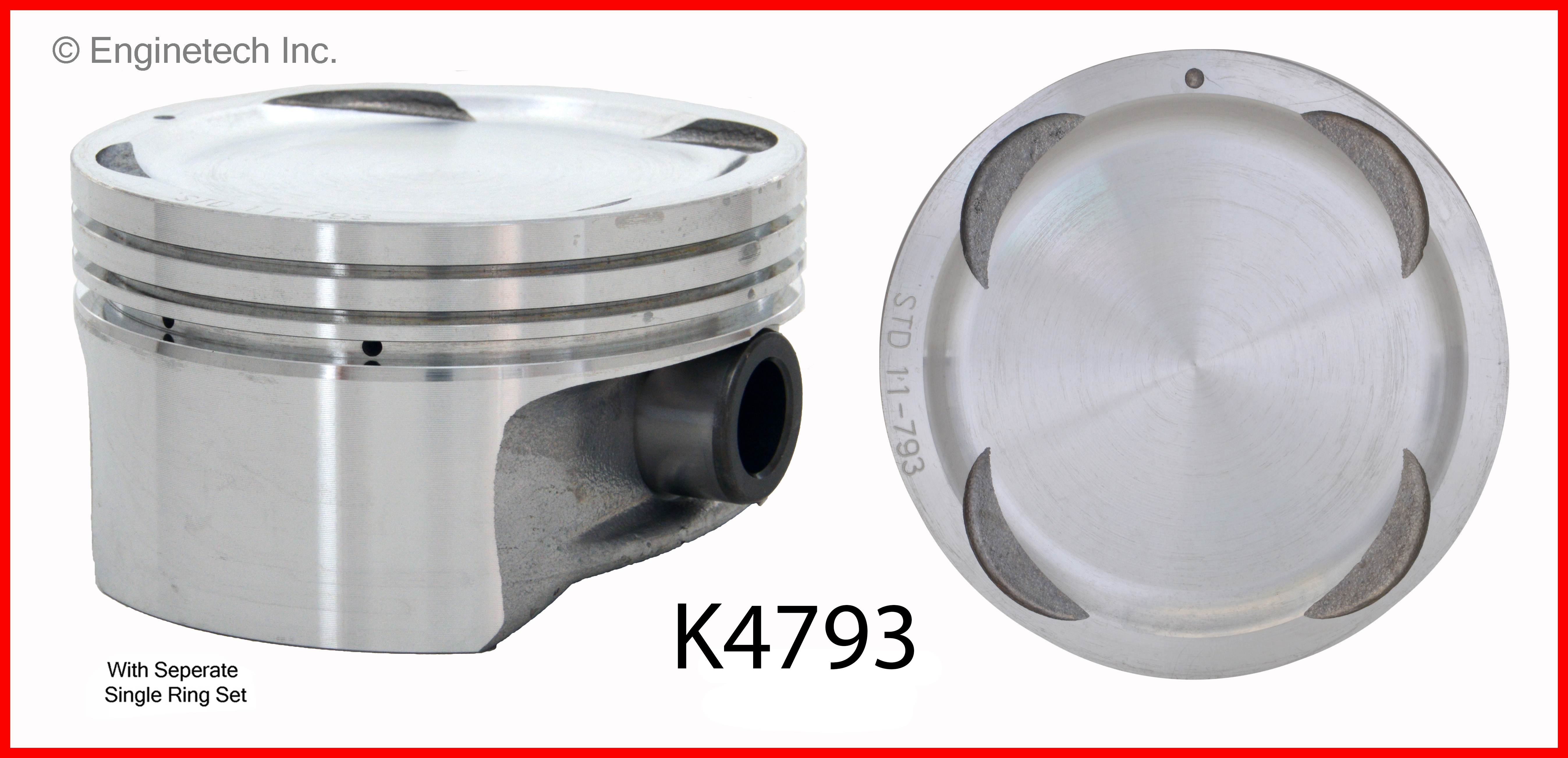 Dish top. 1.169" Compression height. Ring size 1.5 / 1.5 / 3.0mm. Kit contains (6) pistons with C93456 rings not loaded on piston.
