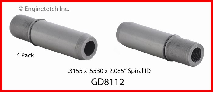 Int. & Exh. .3155 x .5530 x 2.085". Spiral ID. Iron. W/snap ring. (4 pack) Aluminum heads.