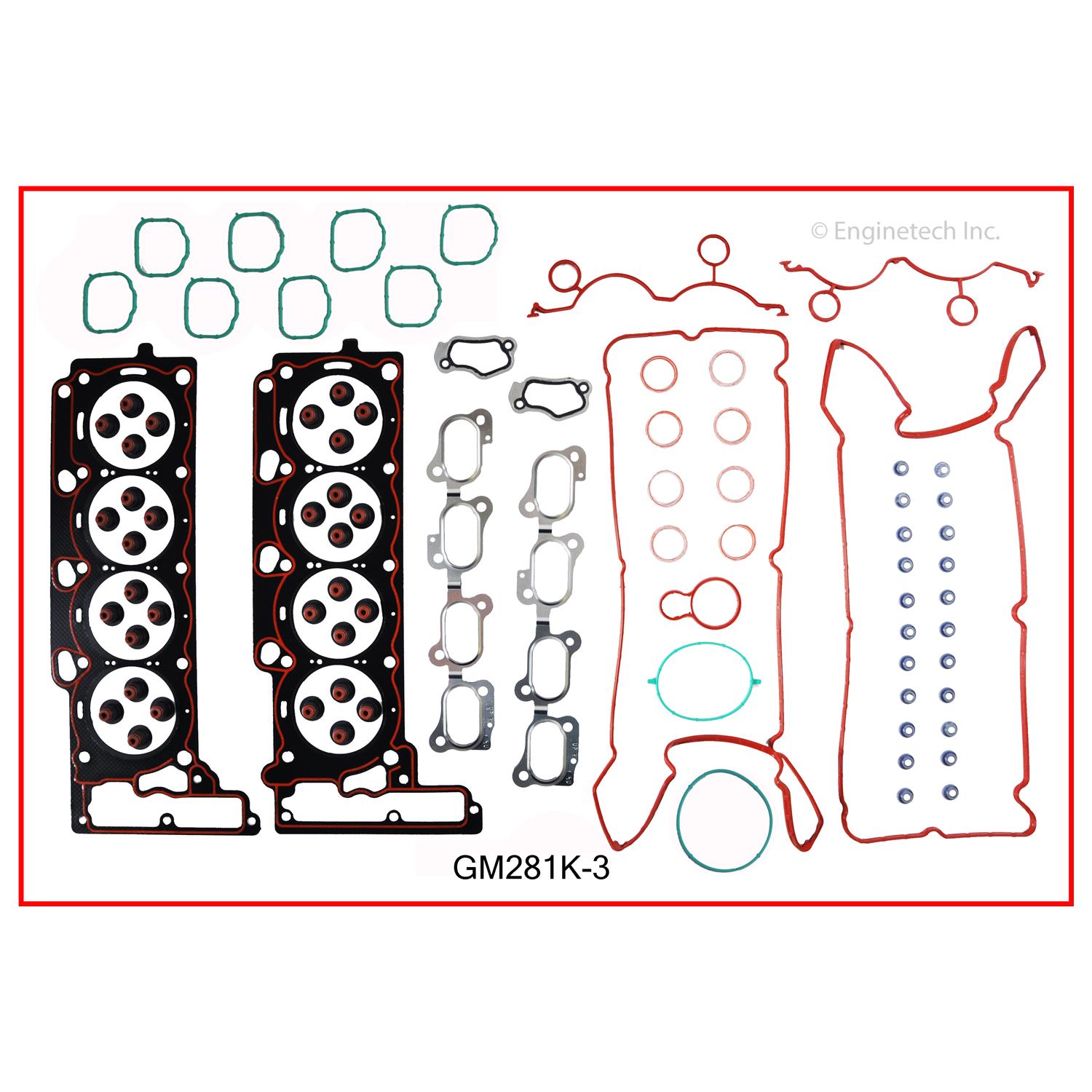 Engine VIN code 9,Y. DeVille, Eldorado & Seville. Engines with 2nd design timing cover (has a P/N stamped on the timing cover). Use new head bolts. Kit contains (1) head set, (1) lower set & (1) water pump set.