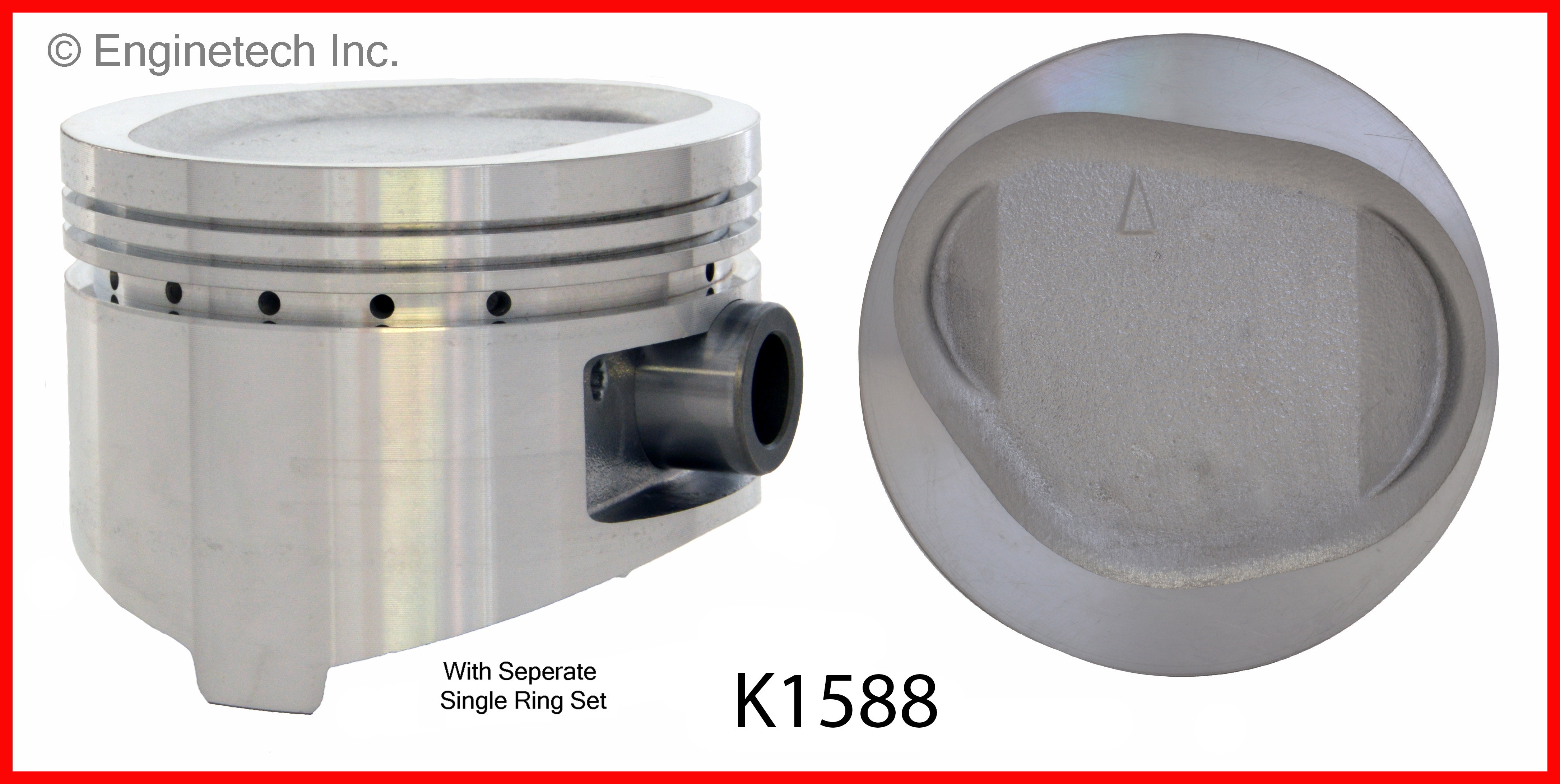 Recessed head. 1.247" compression height. Contains left and right pistons. Kit contains (6) pistons with premium M91146 rings not loaded on piston.