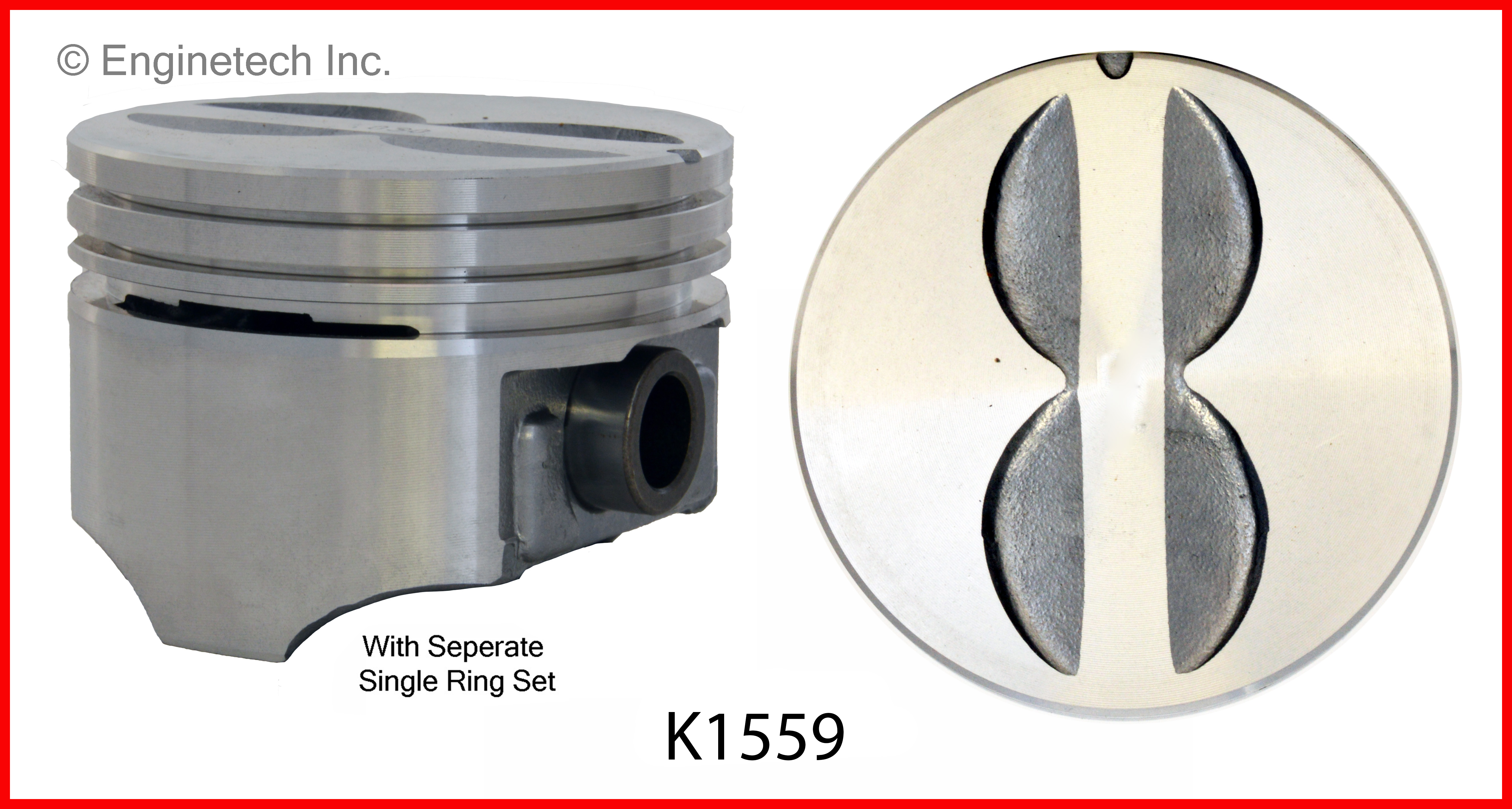 Flat top. 1.540" compression height. Deep oil ring. Kit contains (8) pistons with R37458 rings not loaded on piston.