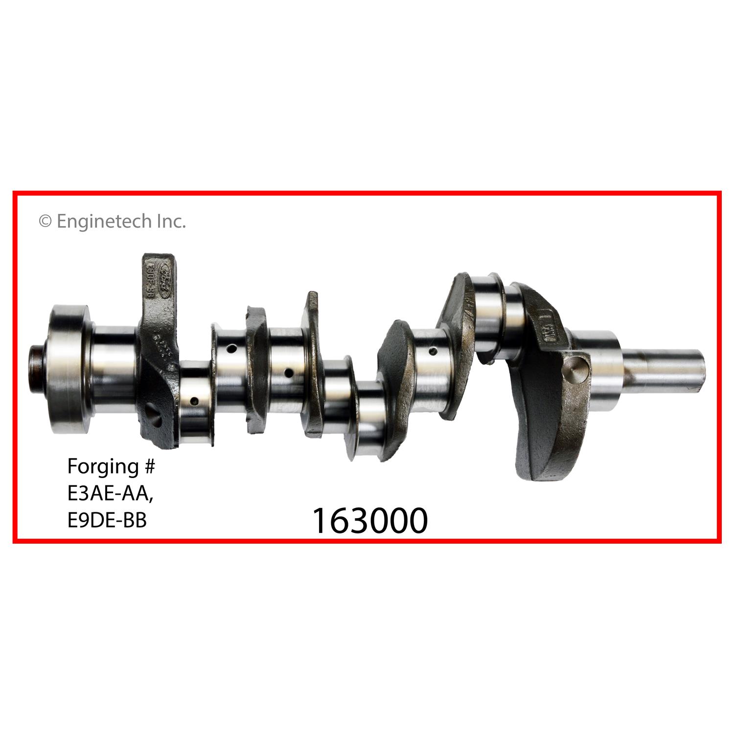 1.390" front main journal width. 0.661" rod bearing width. Includes bearings. Forging #E3AE-AA, E9DE-BB. Check for proper physical match before installation.