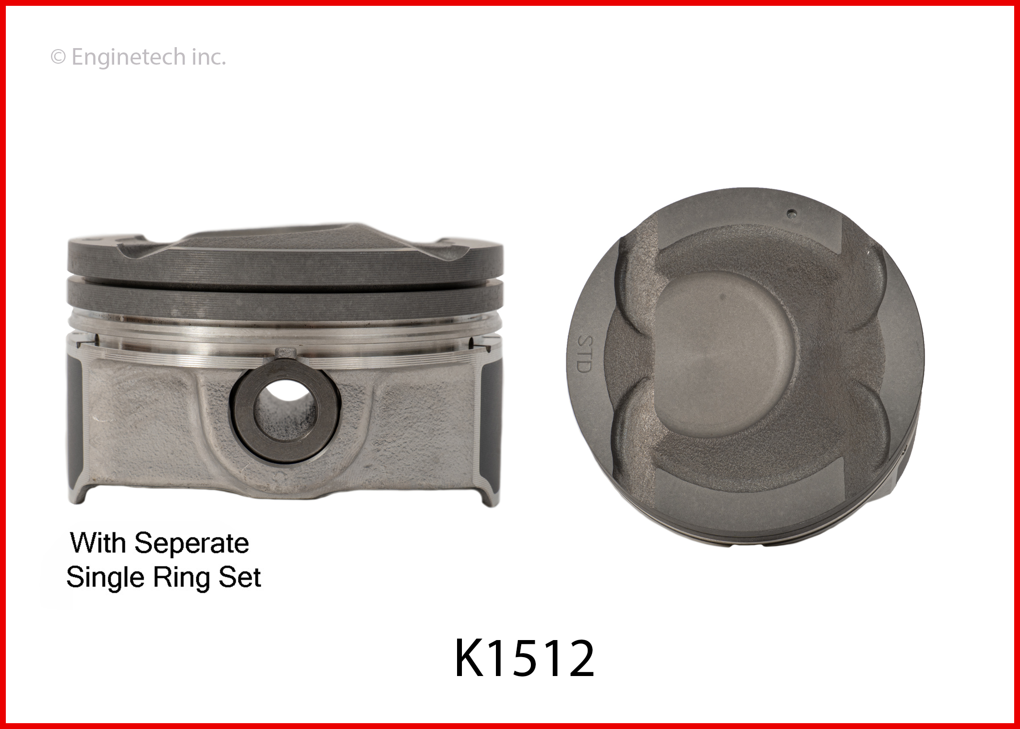 Dish top. Coated skirt. Kit contains (4) pistons with premium M30314 rings not loaded on piston.