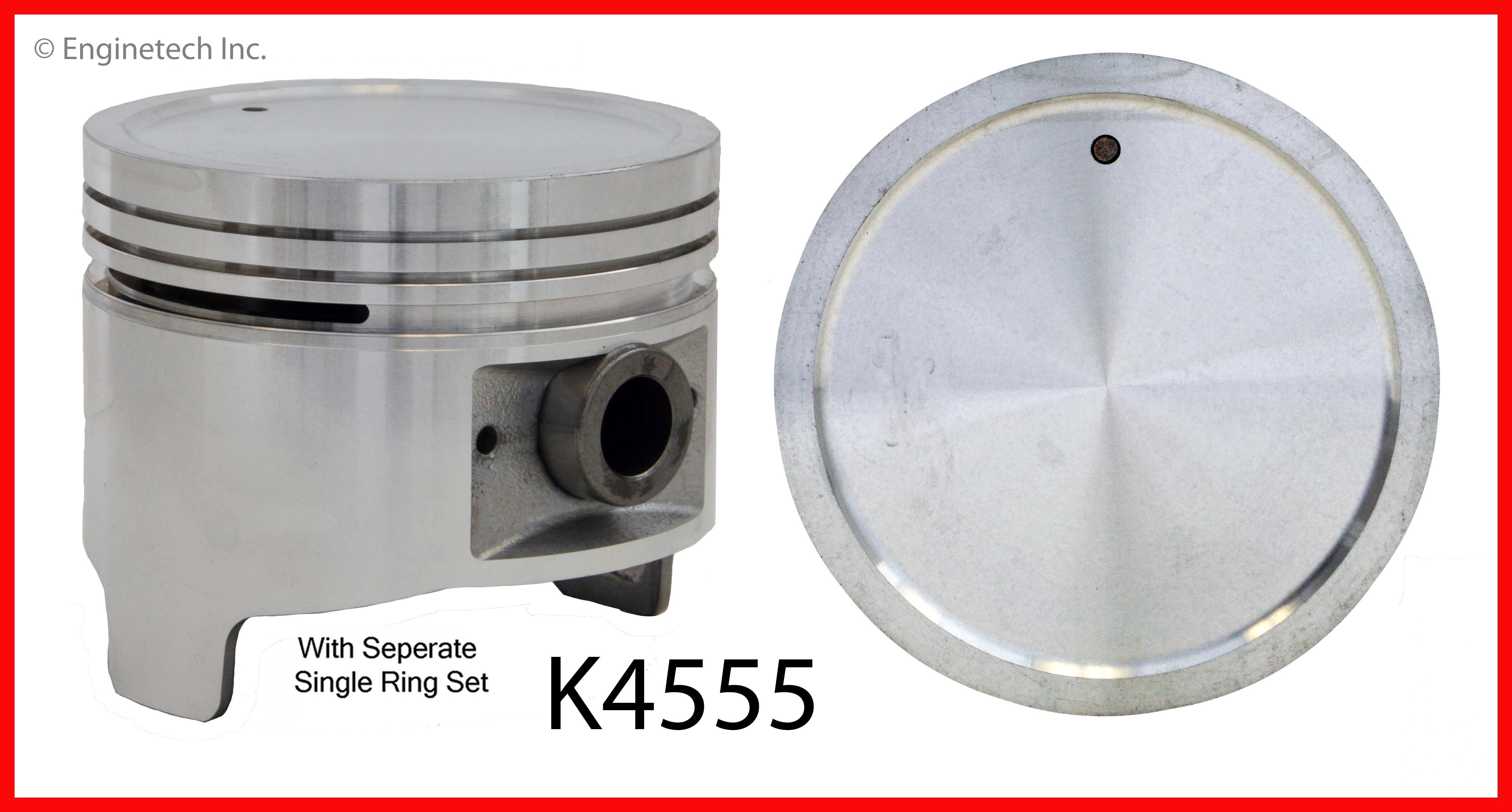 Round dish top. 1.437" compression height. Kit contains (4) pistons with premium C92614 rings not loaded on piston.