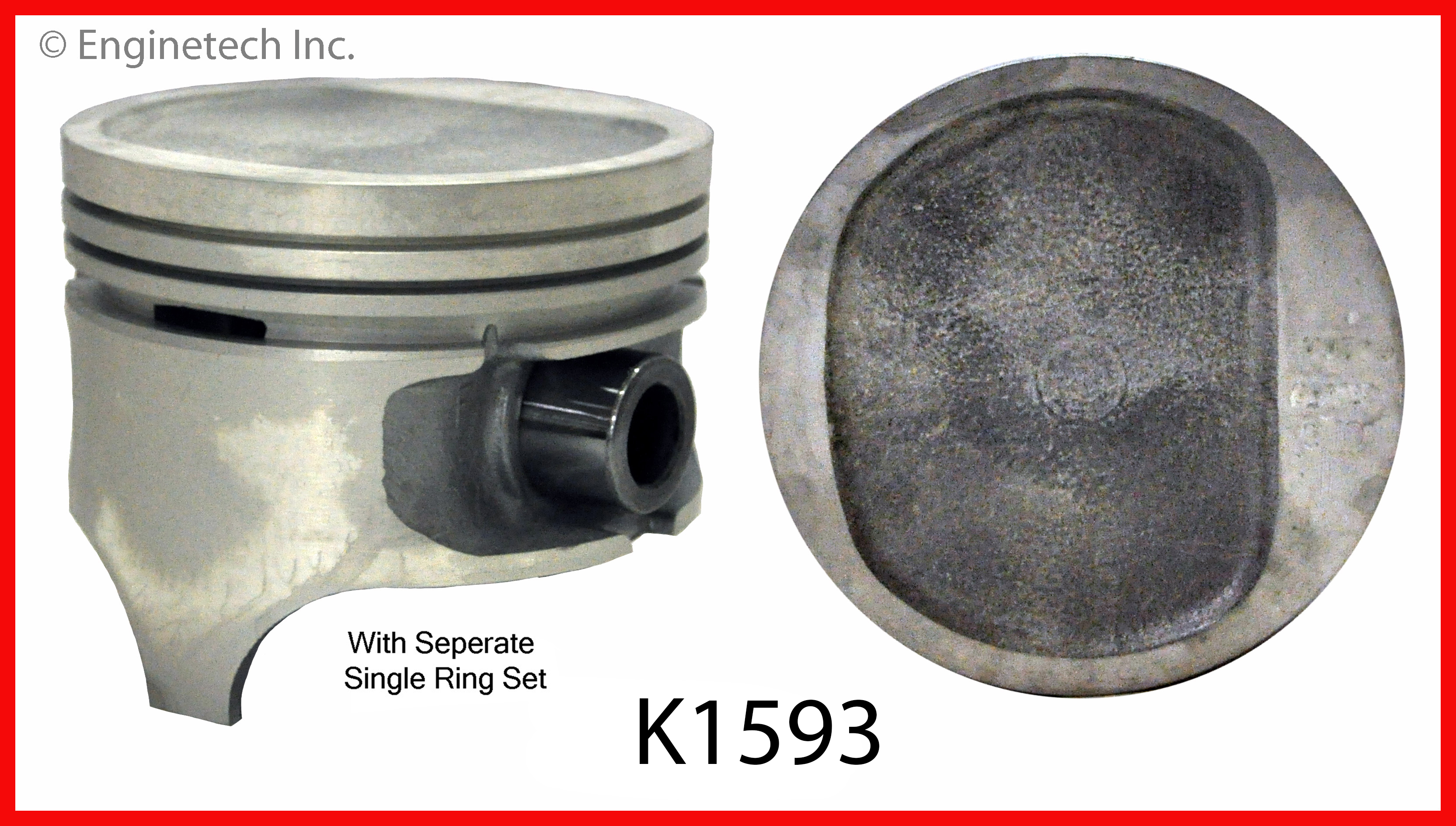 "D" shaped dish top. 1.581" compression height. Press fit pin. Kit contains (4) pistons with premium C38854 rings not loaded on piston.