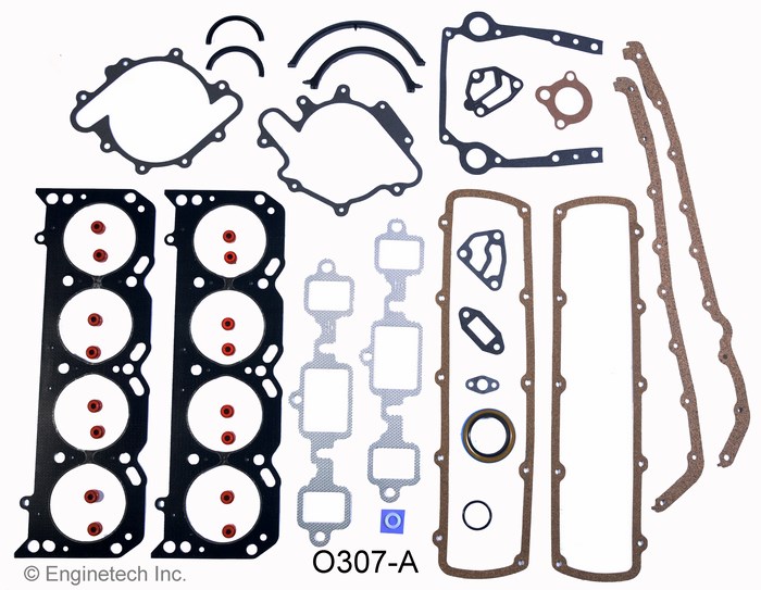 W/rubber rear main seal. Intake gasket not included. Exh. manifold gaskets for 1 9/16 x 2 1/8" end ports not incl.