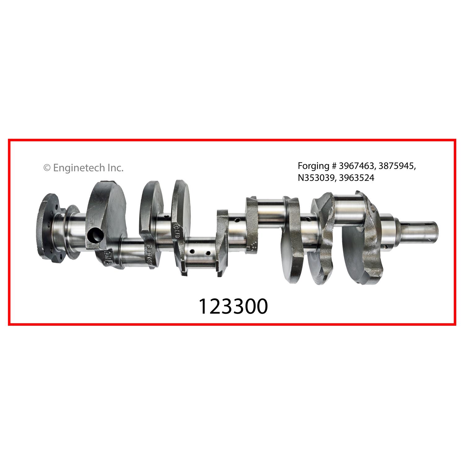 Cast crankshaft. Engines with 2pc. rear main seal. Includes bearings. Forging # 3967463, 3875945, N353039, 3963524. Check for proper physical match before installation.