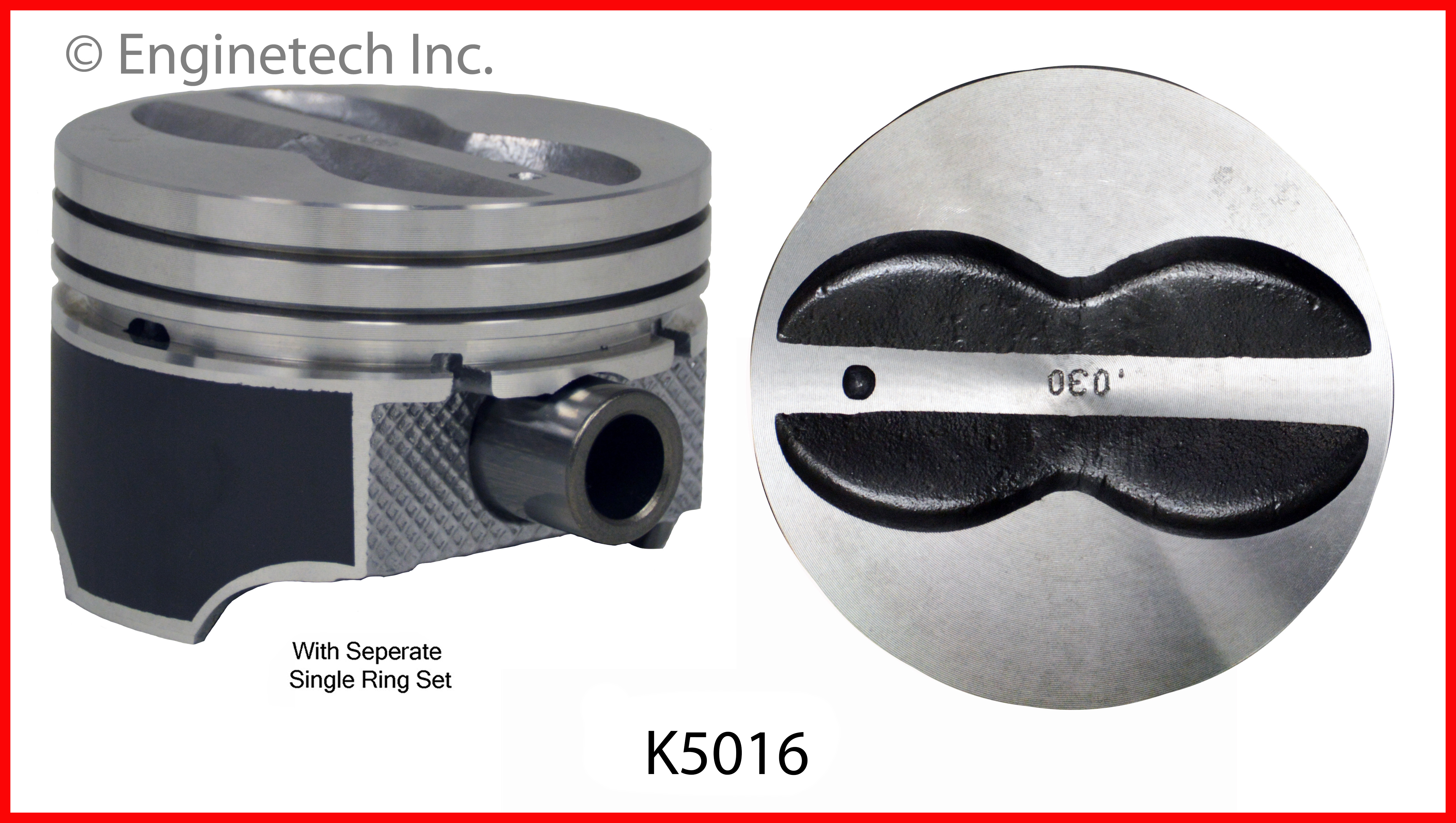 Flat top with valve reliefs. 1.560 CH. Hypereutectic Coated skirt. Use with 5.7 rod. Press fit pin. Kit contains (8) pistons with premium S90228 rings not loaded on piston.