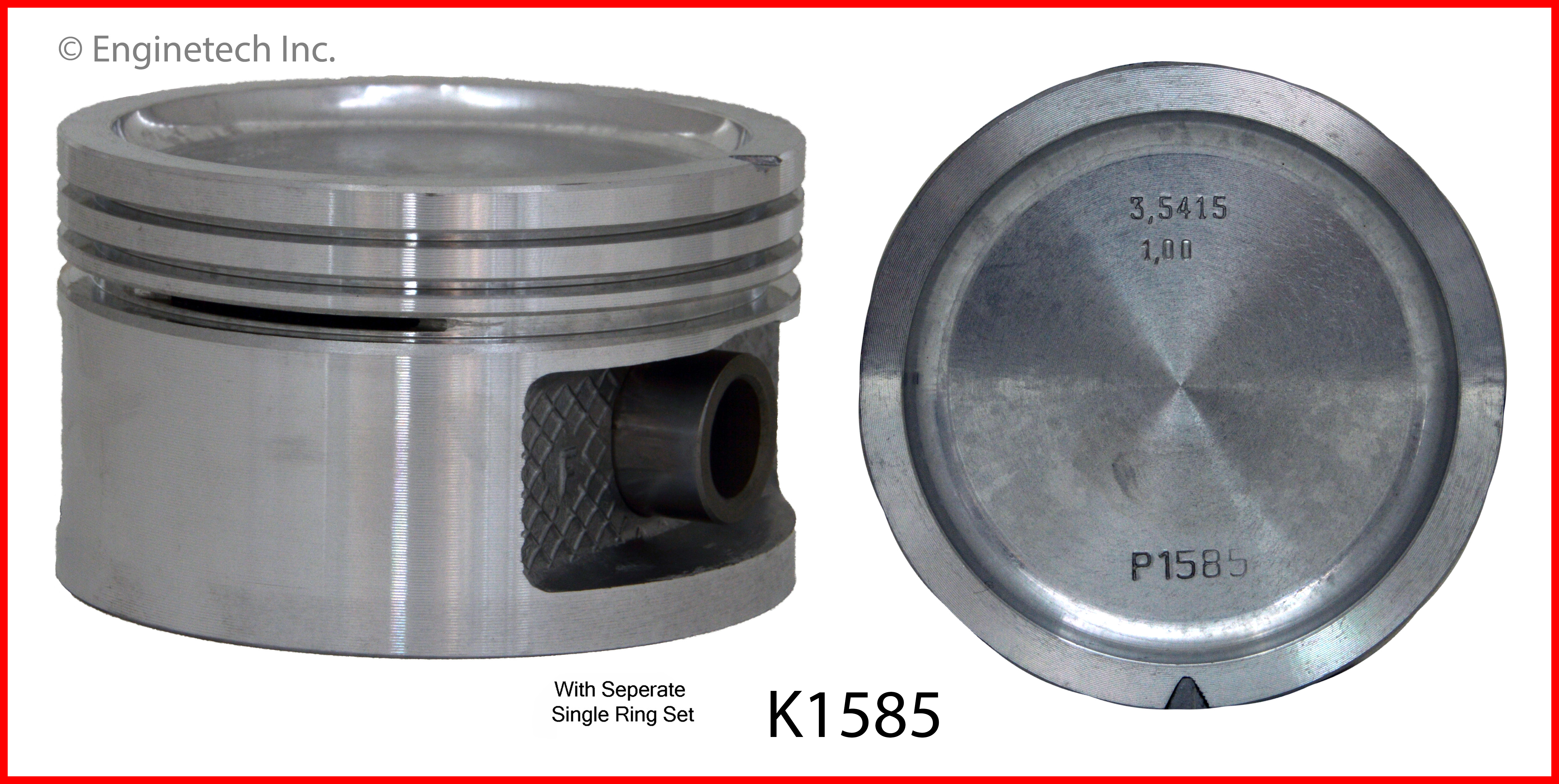 Dish top. 1.298" compression height. Kit contains (4) pistons with premium M89134 rings not loaded on piston.