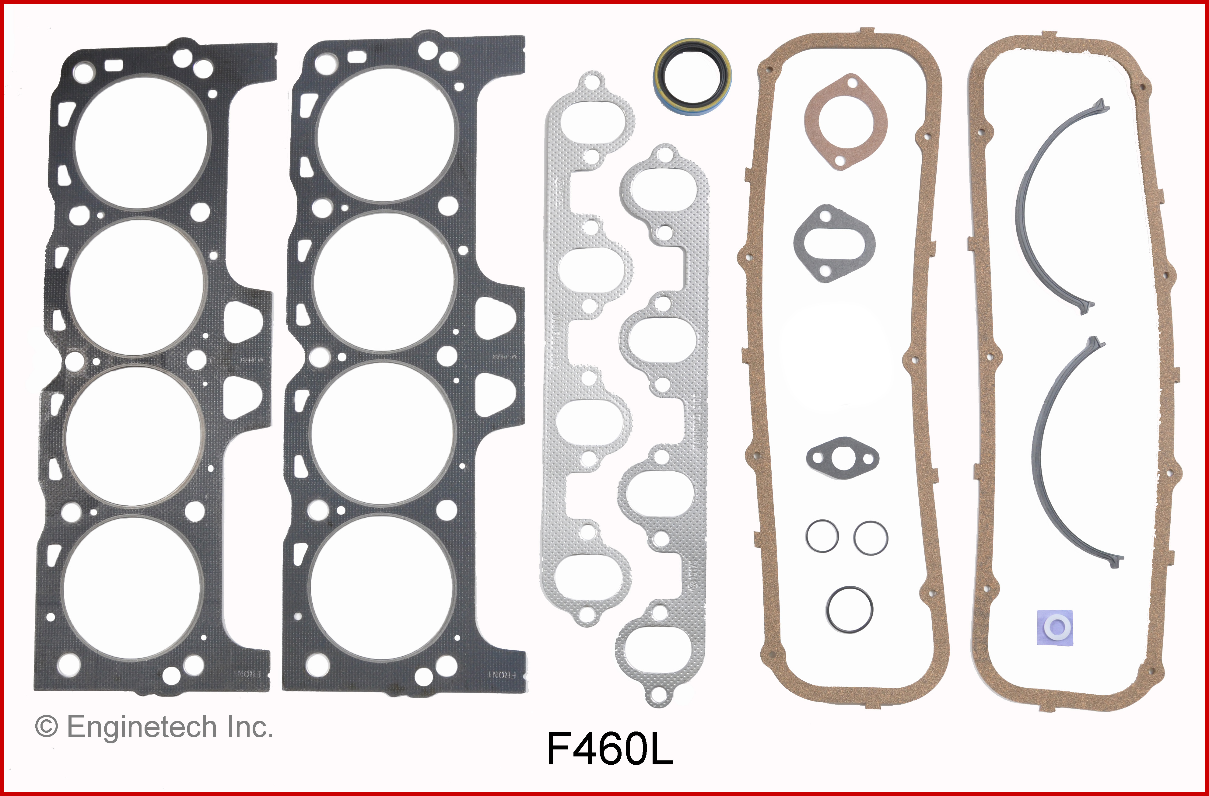 From 3/12/85. Intake manifold gasket not included use IF460. Rebuilder set without rear main or valve stem seals.
