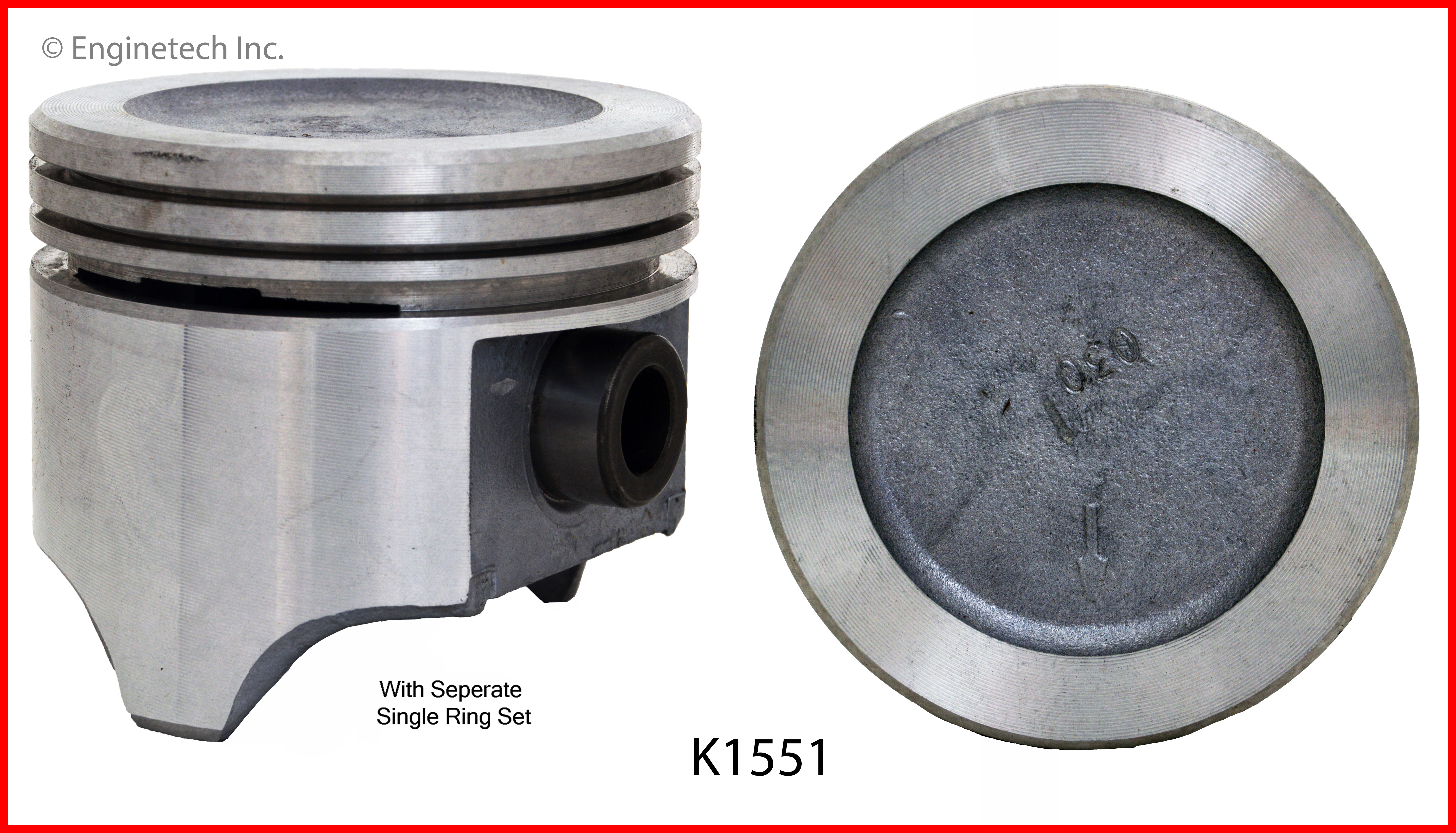 Round dish top. 1.595" compression height. Kit contains (8) pistons with premium M38058 rings not loaded on piston.