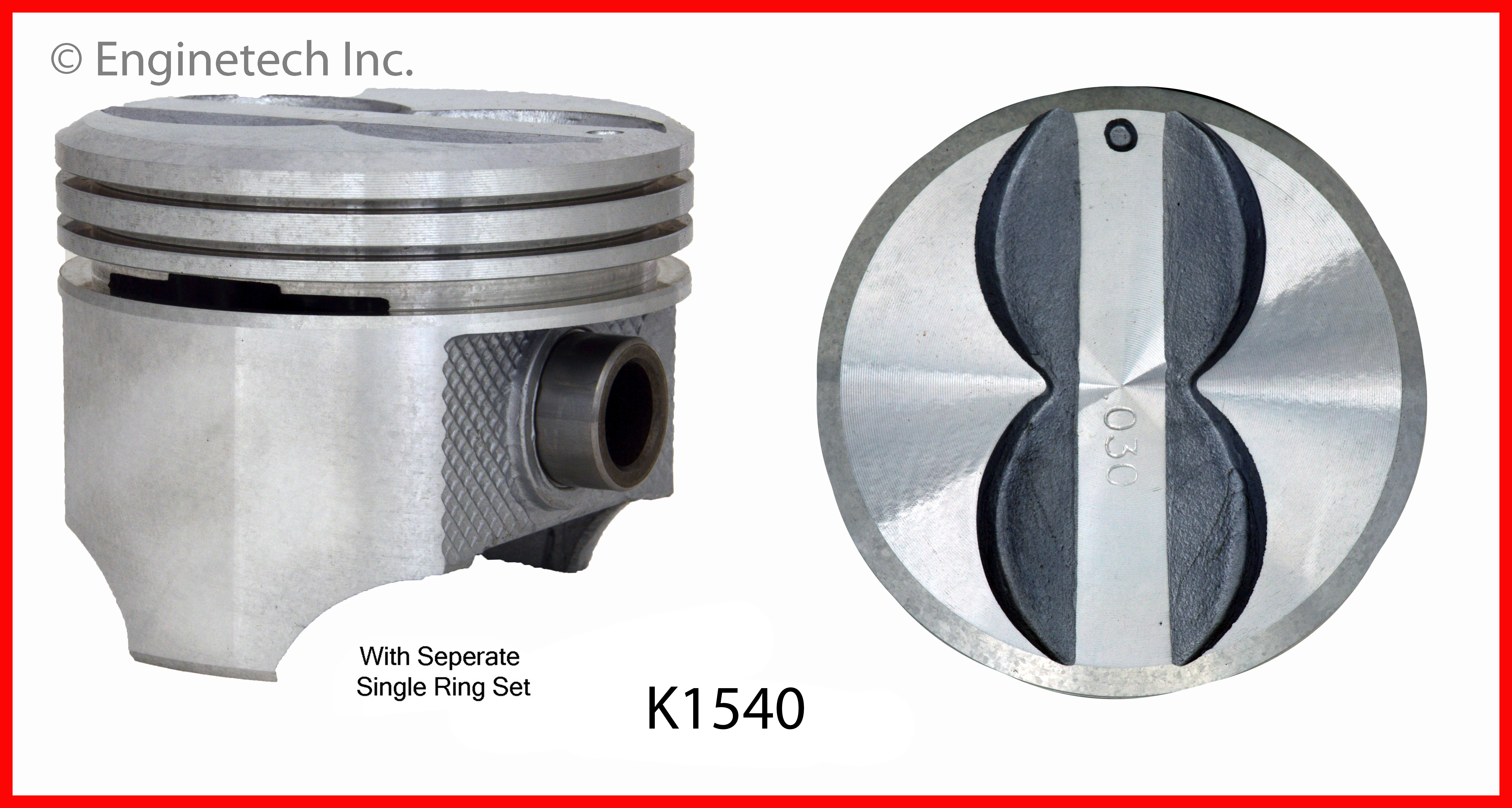 Flat top. 1.655" compression height. Kit contains (8) pistons with R38858 rings not loaded on piston.