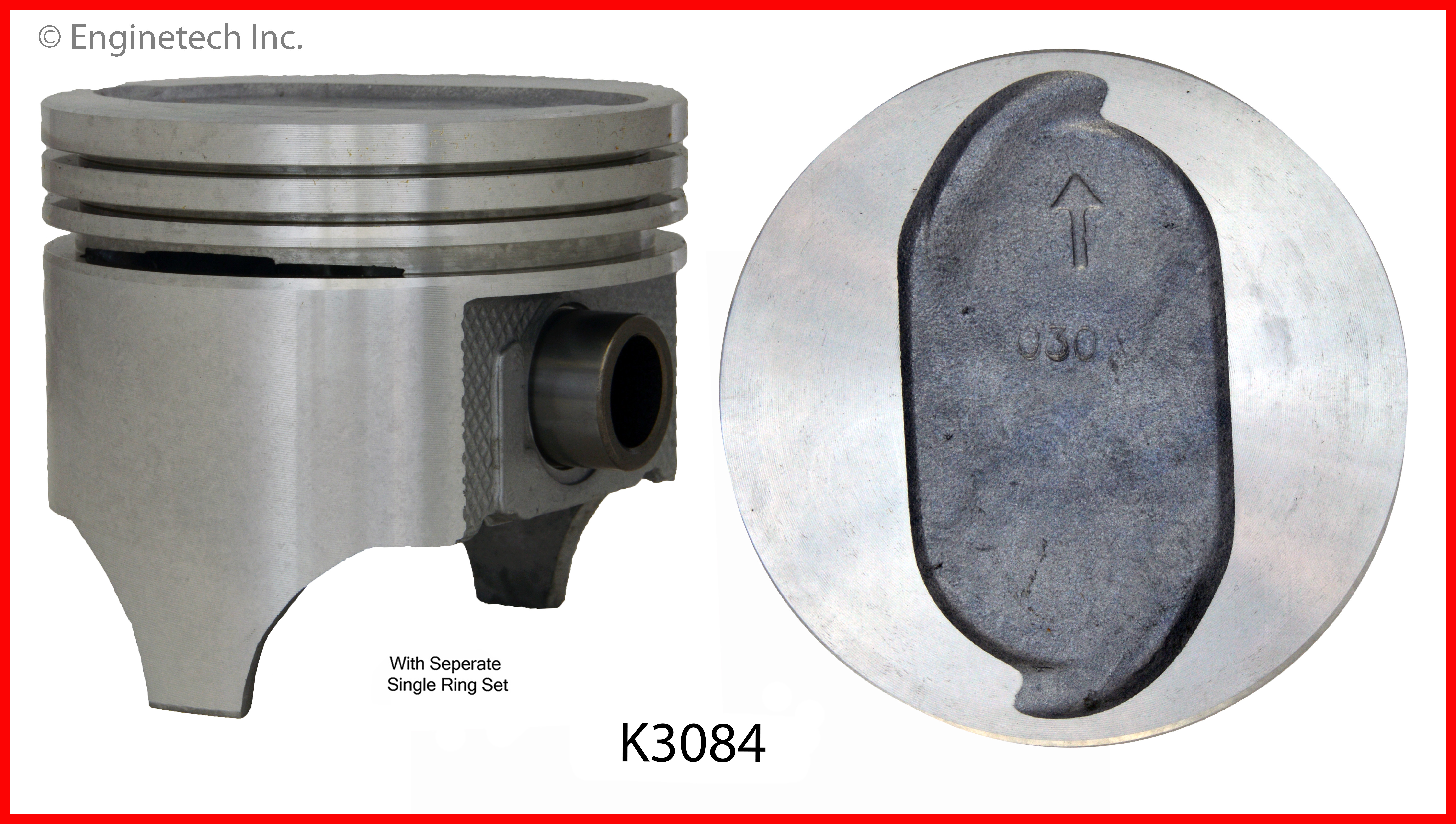 Oblong dish top. 1.882" compression height. Excludes Boss. Kit contains (8) pistons with premium M43658 rings not loaded on piston.