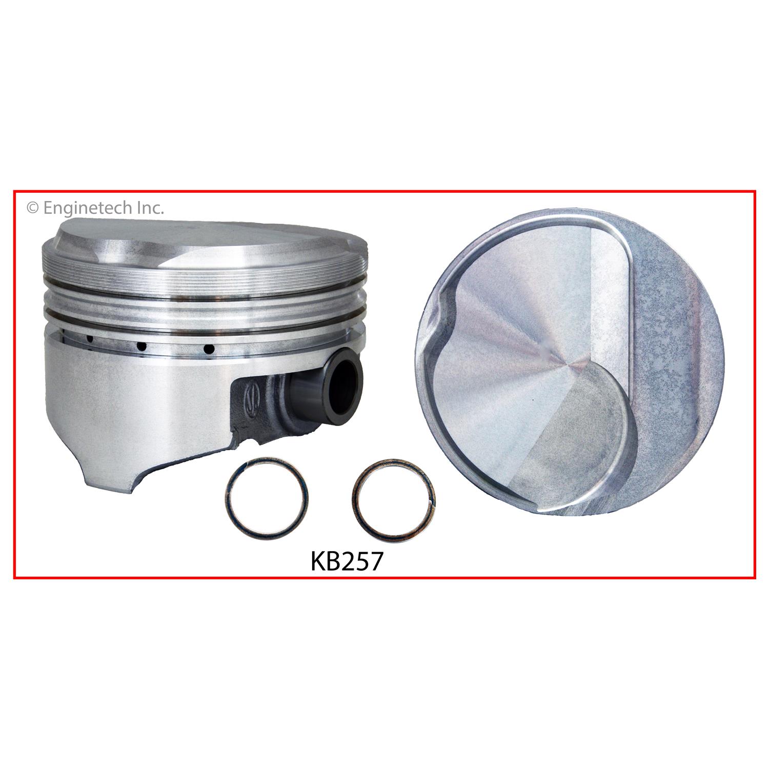 KB Performance. Open chamber. .250" hollow dome top (-25.5cc). 1.645" CH. Hyper. Use 6.135" rod. Use M42558 rings.